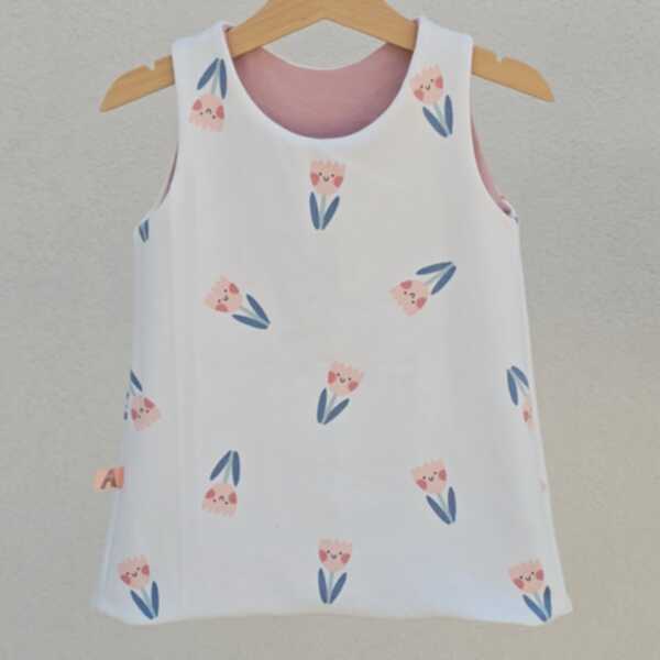 ABITO REVERSIBILE ROSA ANTICO interno fondo biaco con tulipani