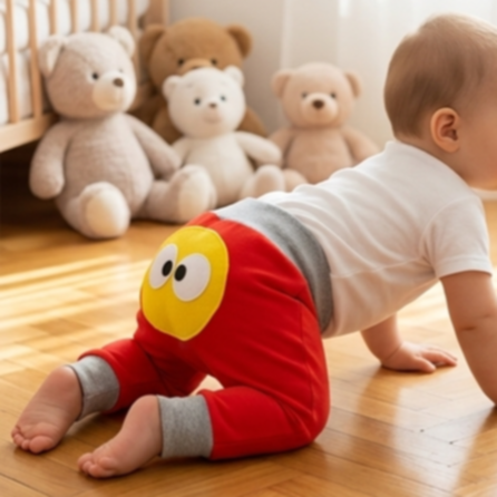 Pantaloni colorati per bambini fino a 4 anni, con cavallo basso e morbido tessuto in felpa, offrendo massima comodità. Ideali per il gioco e la libertà di movimento, sono perfetti per ogni occasione. Grazie al design vivace e al fascione elasticizzato in vita, uniscono praticità e stile.