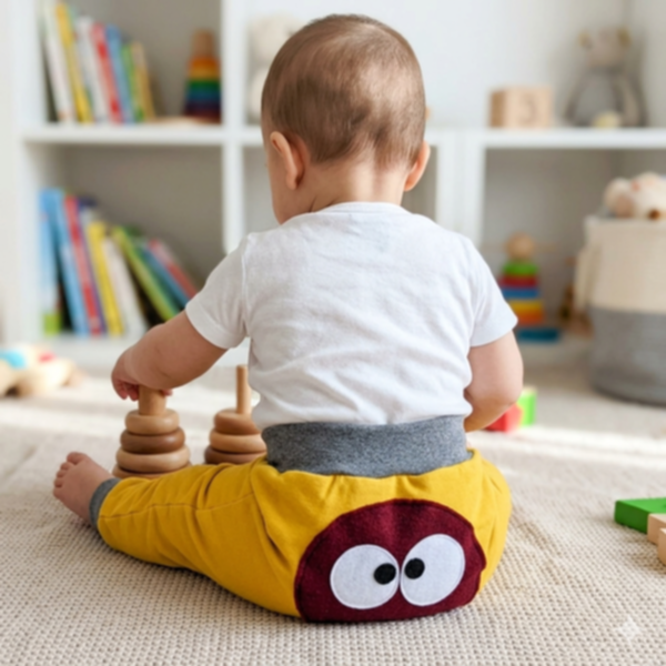 Pantaloni colorati per bambini fino a 4 anni, con cavallo basso e morbido tessuto in felpa, offrendo massima comodità. Ideali per il gioco e la libertà di movimento, sono perfetti per ogni occasione. Grazie al design vivace e al fascione elasticizzato in vita, uniscono praticità e stile.